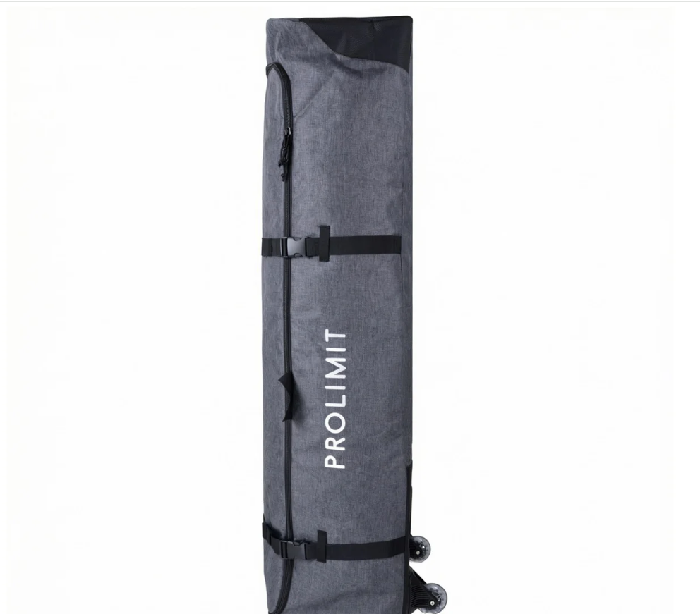 Prolimit TwinTip Boardbag voor reizen en dagelijks gebruik, uitgerust met gepatenteerde en nieuw ontwikkelde Prolimit Slider-wielen. Het robuuste 700D Polyester materiaal is extreem sterk en beschermt je boards en uitrusting dankzij de dikke schuimvulling.