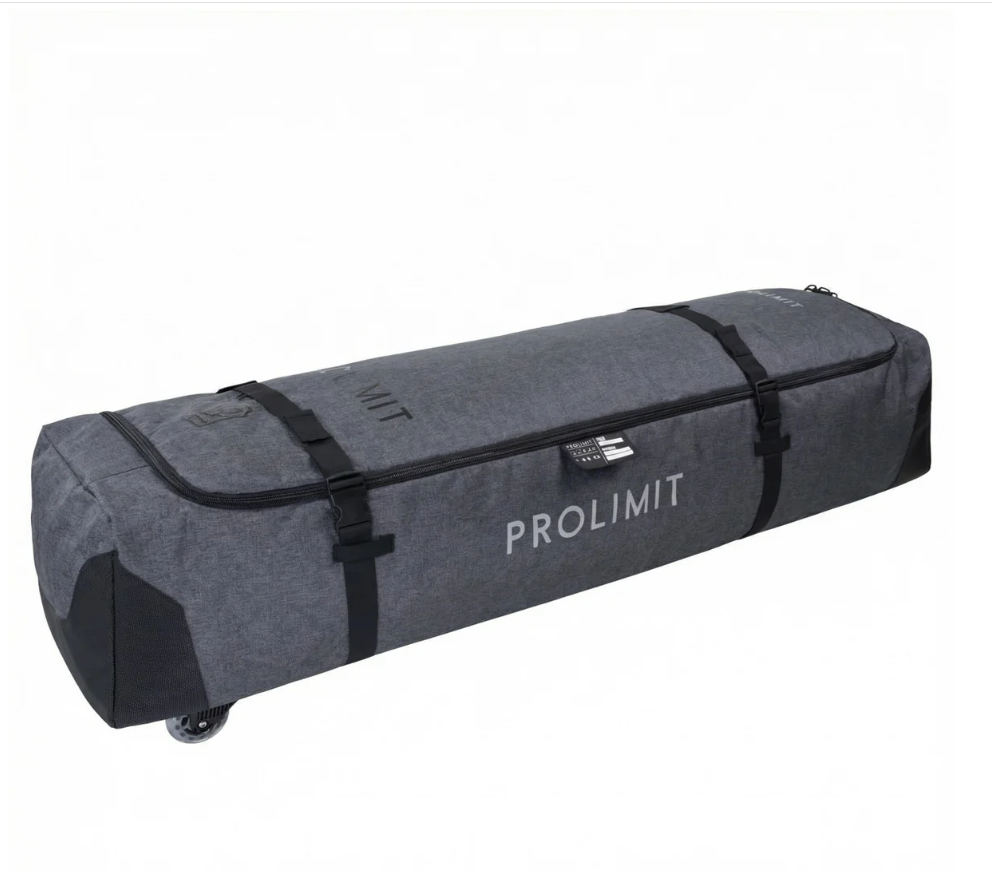 Prolimit TwinTip Boardbag voor reizen en dagelijks gebruik, uitgerust met gepatenteerde en nieuw ontwikkelde Prolimit Slider-wielen. Het robuuste 700D Polyester materiaal is extreem sterk en beschermt je boards en uitrusting dankzij de dikke schuimvulling.