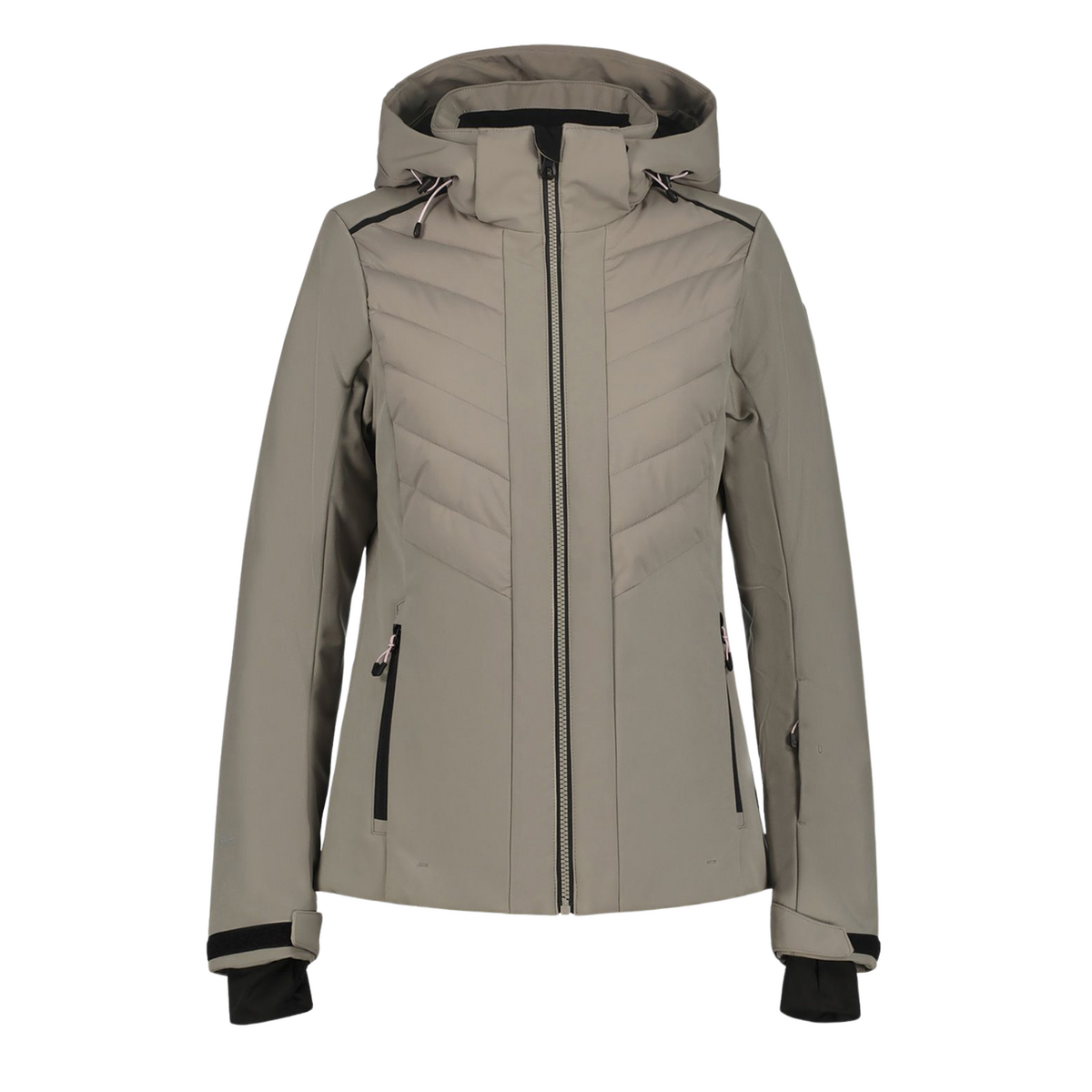 De Icepeak Freital Dames Ski jas heeft een scala aan praktische details, sneeuwvanger, skipaszak, ruime binnenzak voor je essentials, alles zit erop en eraan. Het stretchy softshell materiaal beweegt met je mee, terwijl de waterafstotende finish en lichte isolatie je beschermen tegen kou en nattigheid.