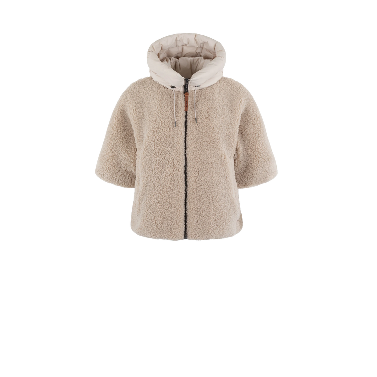Deze korte jas van Moscow combineert het beste van twee werelden: een trendy teddylook en de warmte van dons. De buitenkant is uitgevoerd in een superzachte teddy stof, terwijl de binnenkant is gevuld met eendendons en veren voor een heerlijk comfortabel en warm gevoel.
