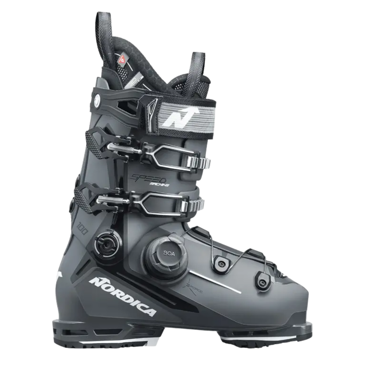 Voor skiërs die de piste op willen, is de SPEEDMACHINE 3 100 BOA GW van Nordica een herenskischoen die zijn naam eer aan doet.