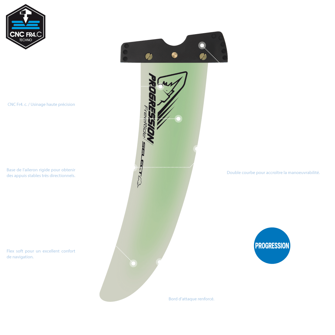 De Progression vin van Select is een gemakkelijk te gebruiken maar toch ook solide vin door dat hij gemaakt is van het Fr4.c materiaal. De Progression is de ideale vin om mee te beginnen met windsurfen en daarna door te groeien tot een echte gevorderde surfer. De vin is double curved en de prijs kwaliteit verhouding is erg goed. De vin is verkrijgbaar in verschillende lengtes met verschillende boxen.