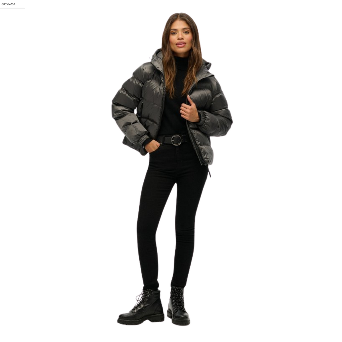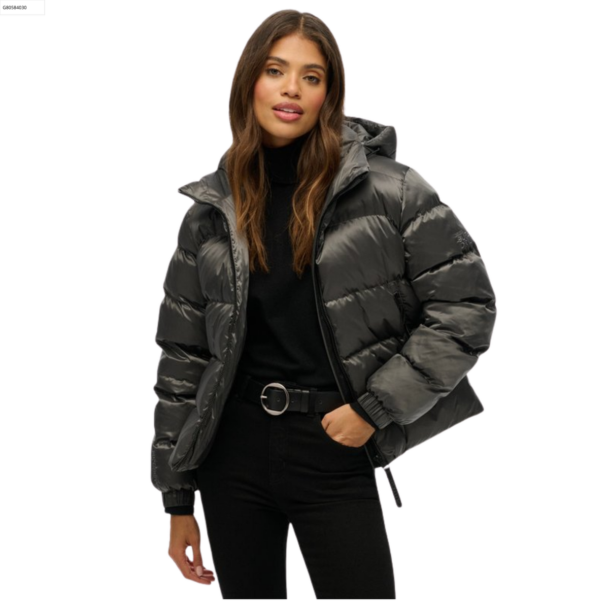 Titel | Dames Jas Hooded Luxe Puffer Black Sheen M |